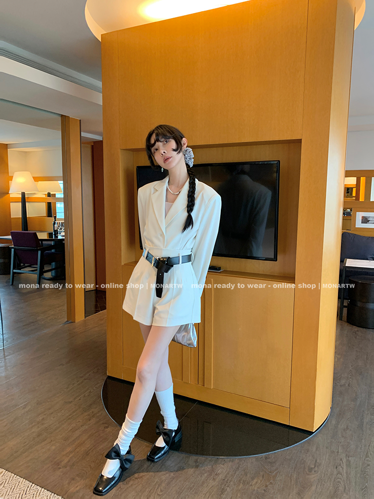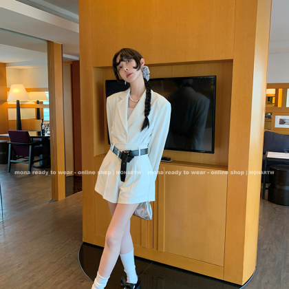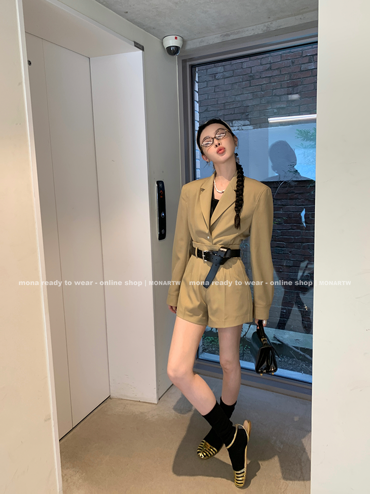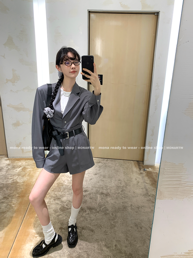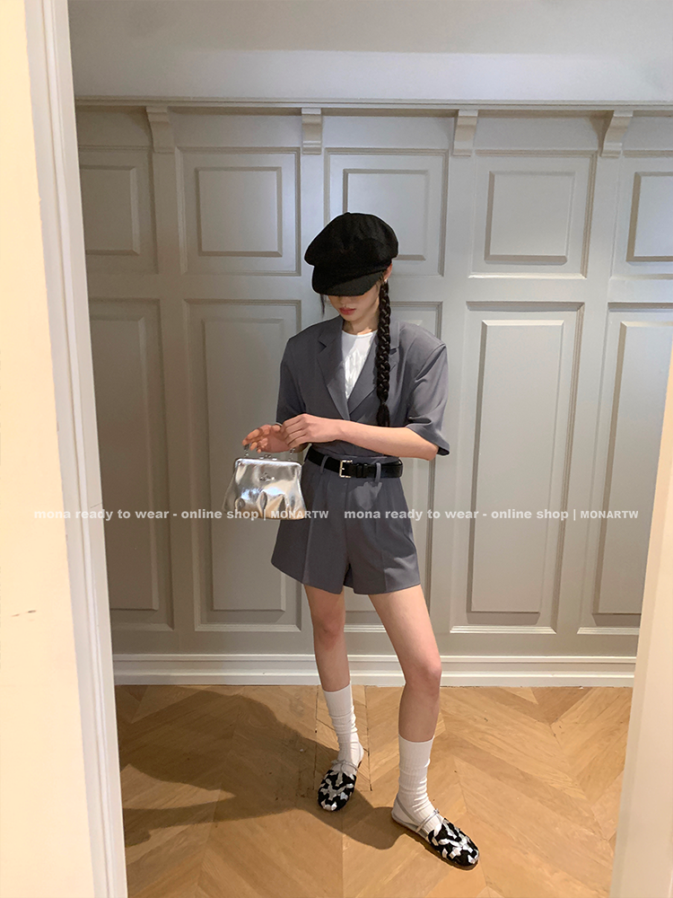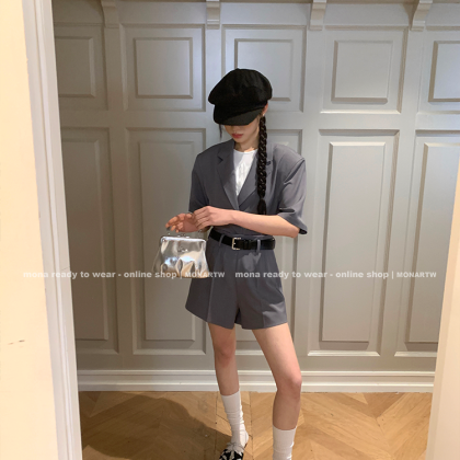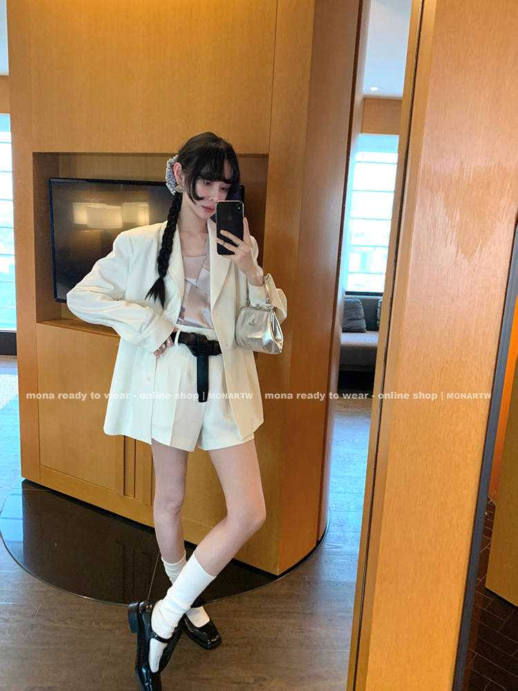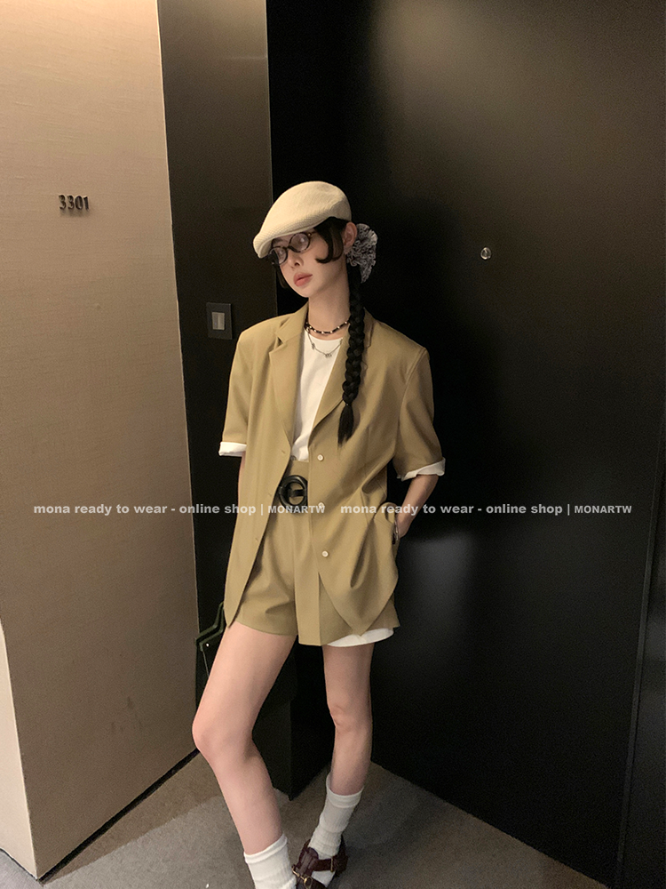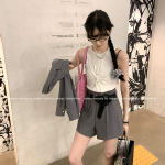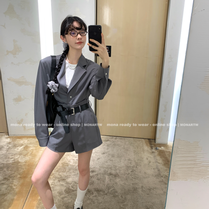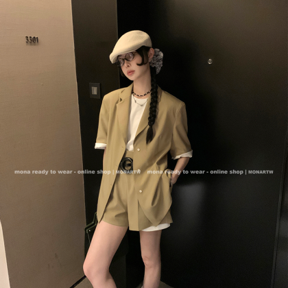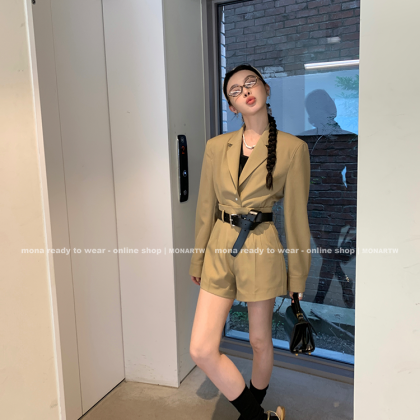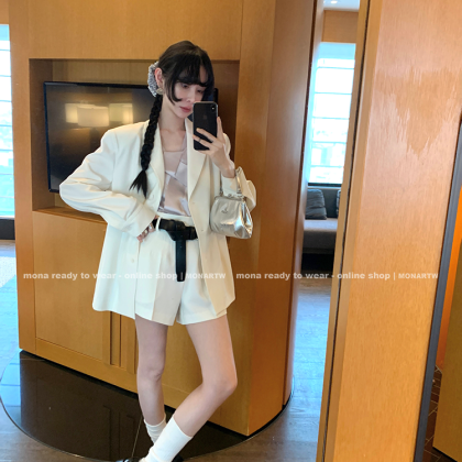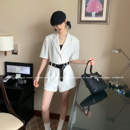 MONA Casual Blazer Mid-High Waist Shorts Suit Women's Small Belt 2024 New Summer Clothes