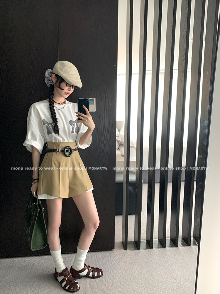 منى الدعوى غير الرسمية سترة متوسطة وشورت الخصر العالي مجموعة الحزام الصغير للسيدات 2024 ارتداء الصيف الجديد