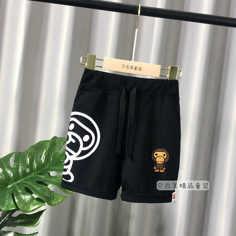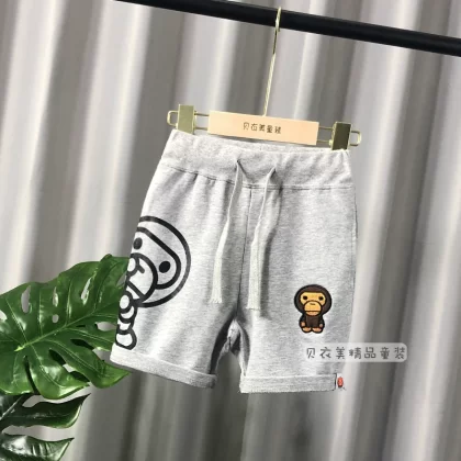 Monkey cartoon embroidery style medium pants for boys summer wear