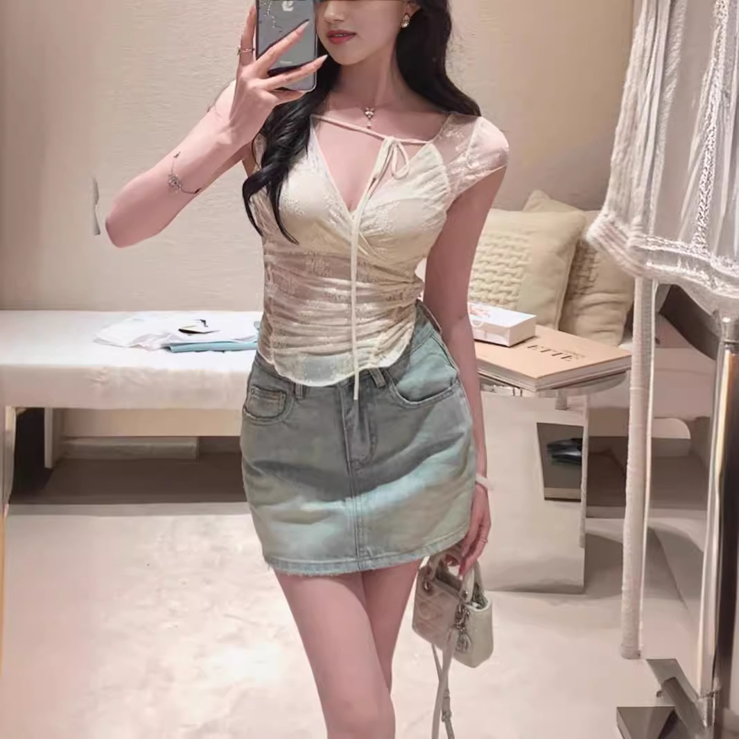 | nameOriginal | Moonlight Lace Candlelight Dinner's Jiaojiao Feeling ~ Cross High Elastic Flower Lace Top |