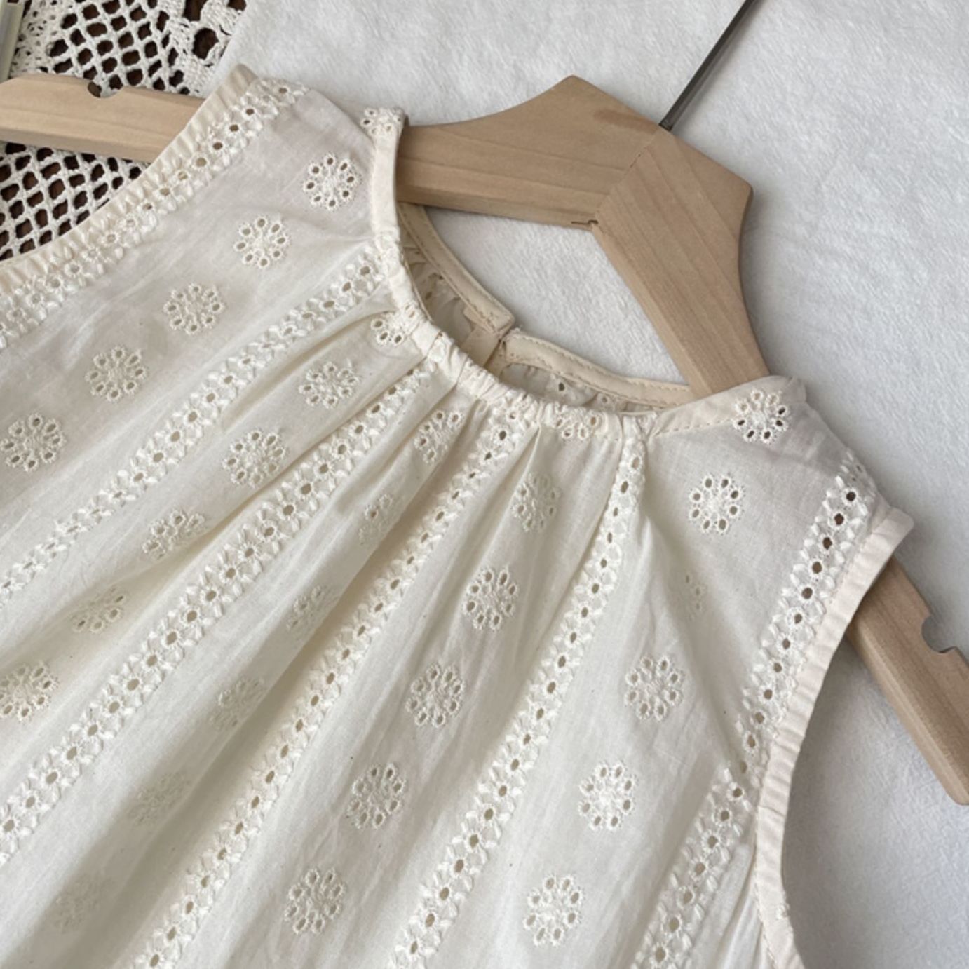 | nameOriginal | Mori Children's Wear Girl's Baby Flower Hollow Sleeveless Vest Doll Shirt Children's Shirt Top 0029A068 |