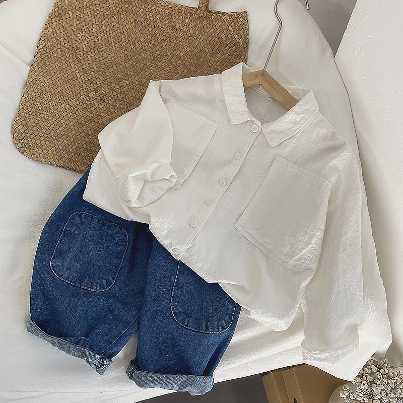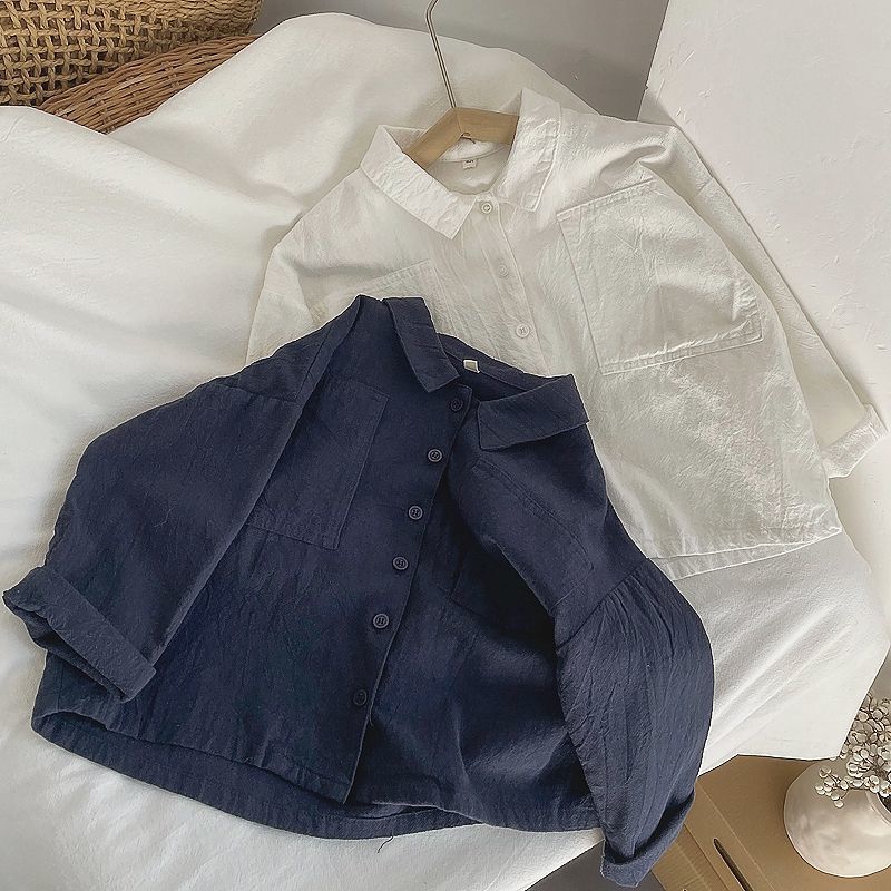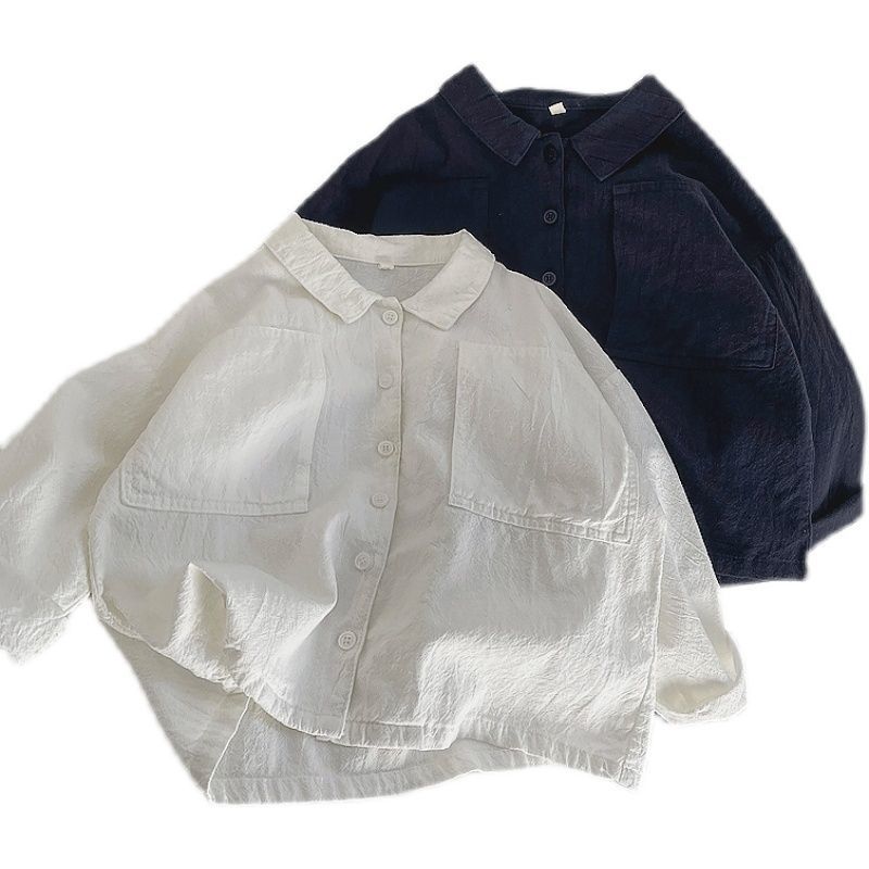 | nameOriginal | Mori Style Retro ~ Cotton and Linen Loose Korean Style Bat Sleeve Children's Shirt for Boys and Girls Casual Two-Pocket Trendy Top |