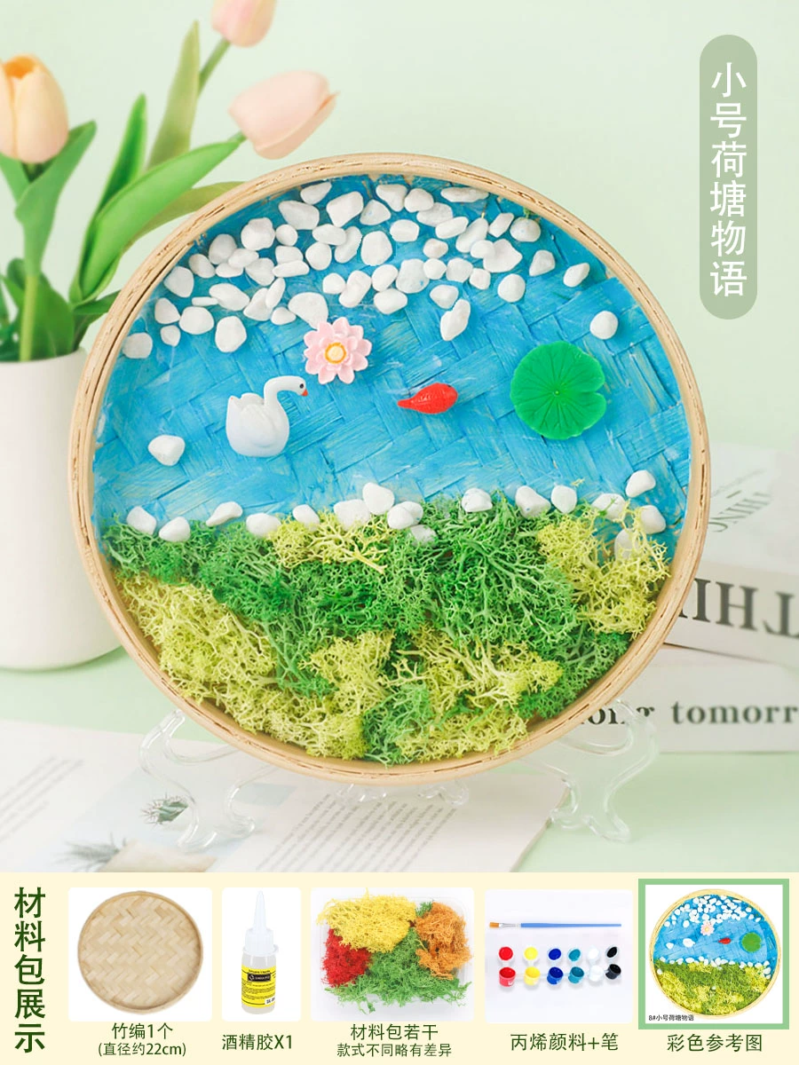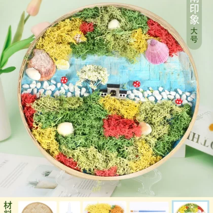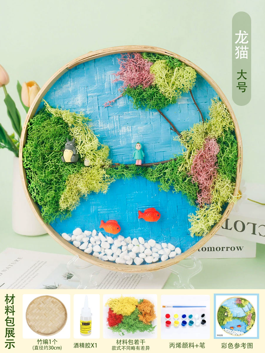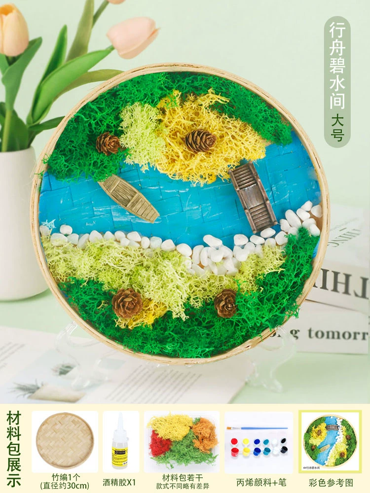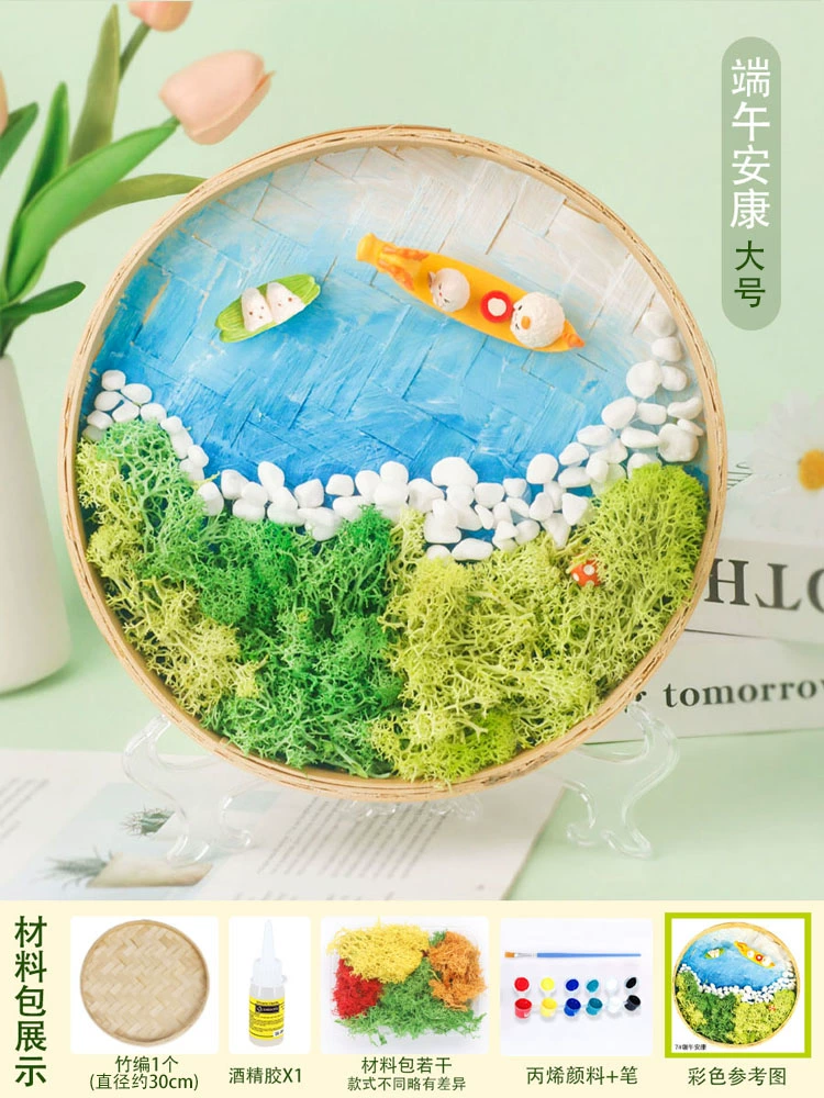 | nameOriginal | Moss painting handmade diy material package children's painting bamboo woven bamboo basket photo frame eternal green plants Mid-Autumn Festival |