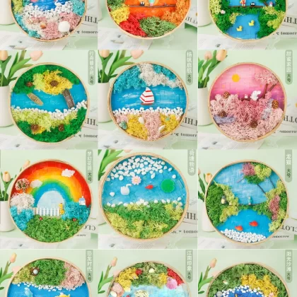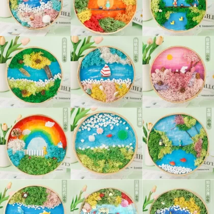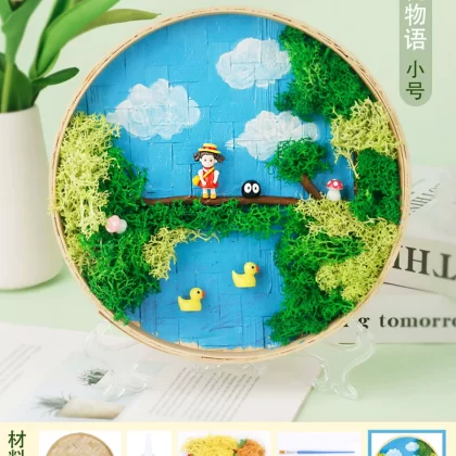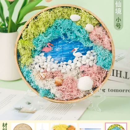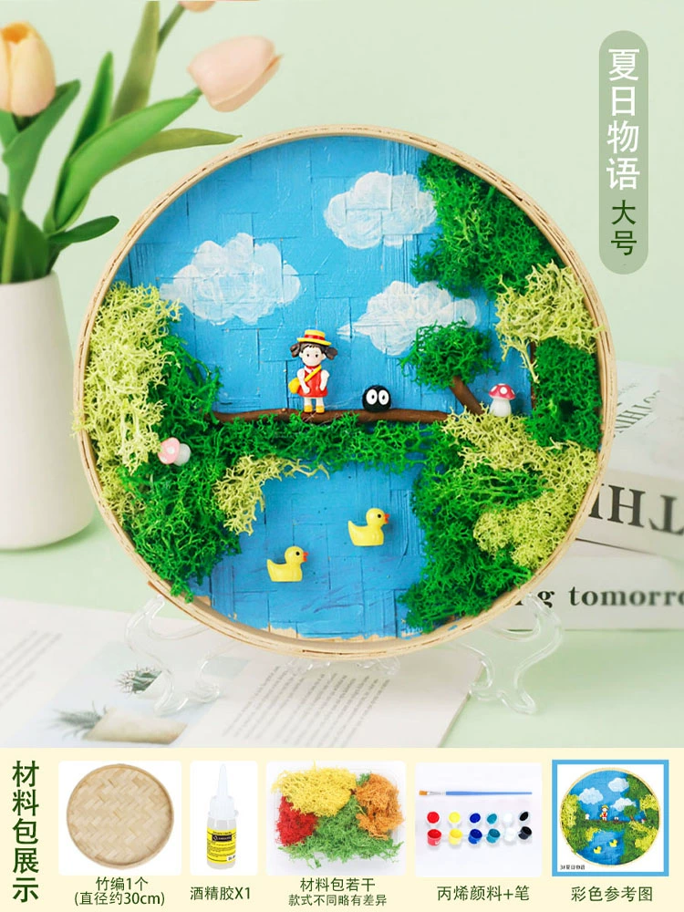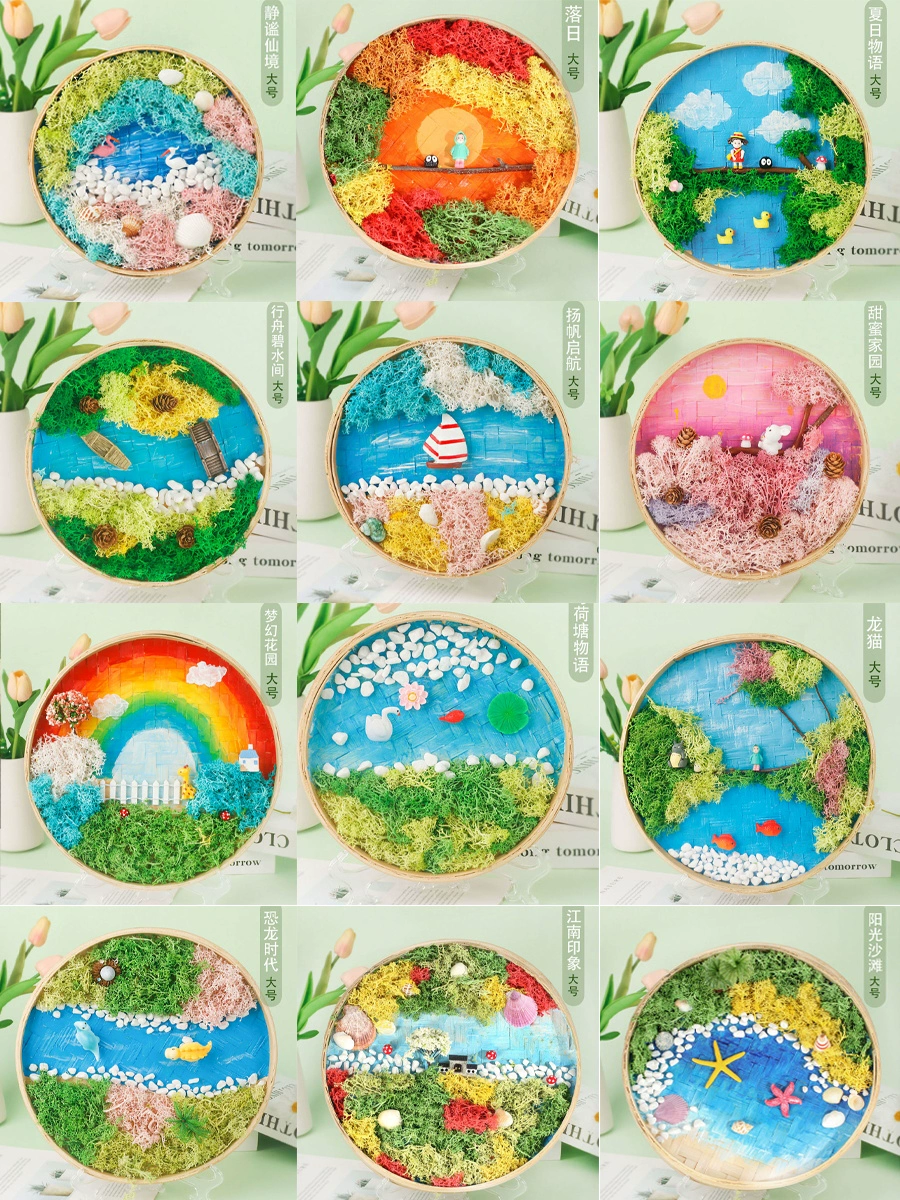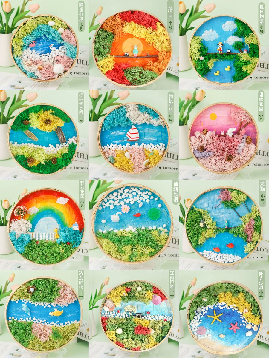 | nameOriginal | Moss painting handmade diy material package children's painting bamboo woven bamboo basket photo frame eternal green plants Mid-Autumn Festival |