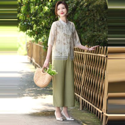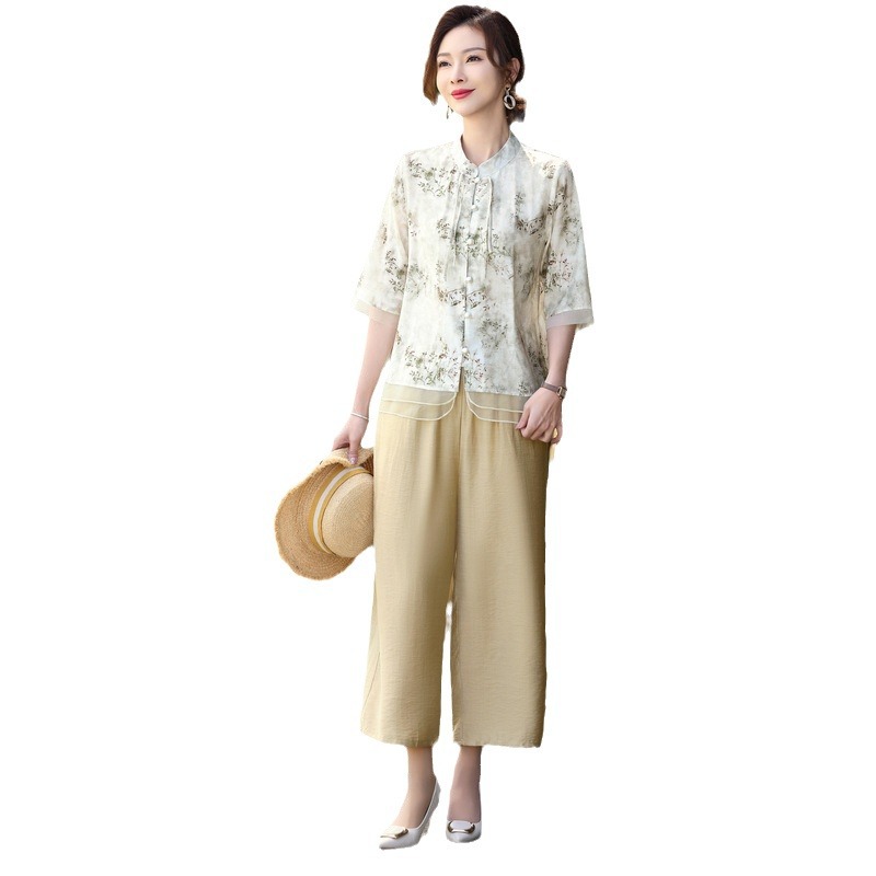 nameOriginal | Mother's Summer Casual suit Western Style 2024 New Middle-aged Summer Short-sleeved New Chinese Shirt Two-piece Set |