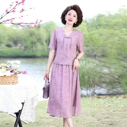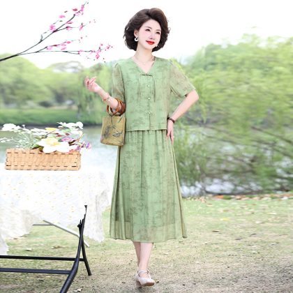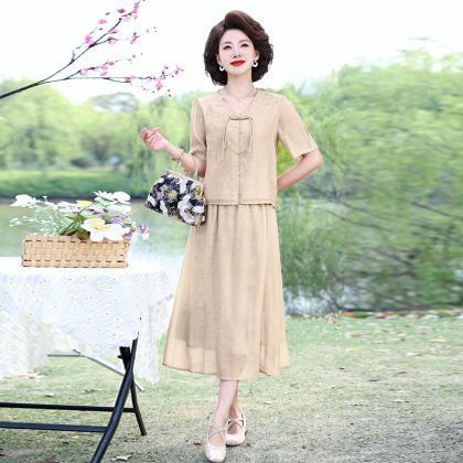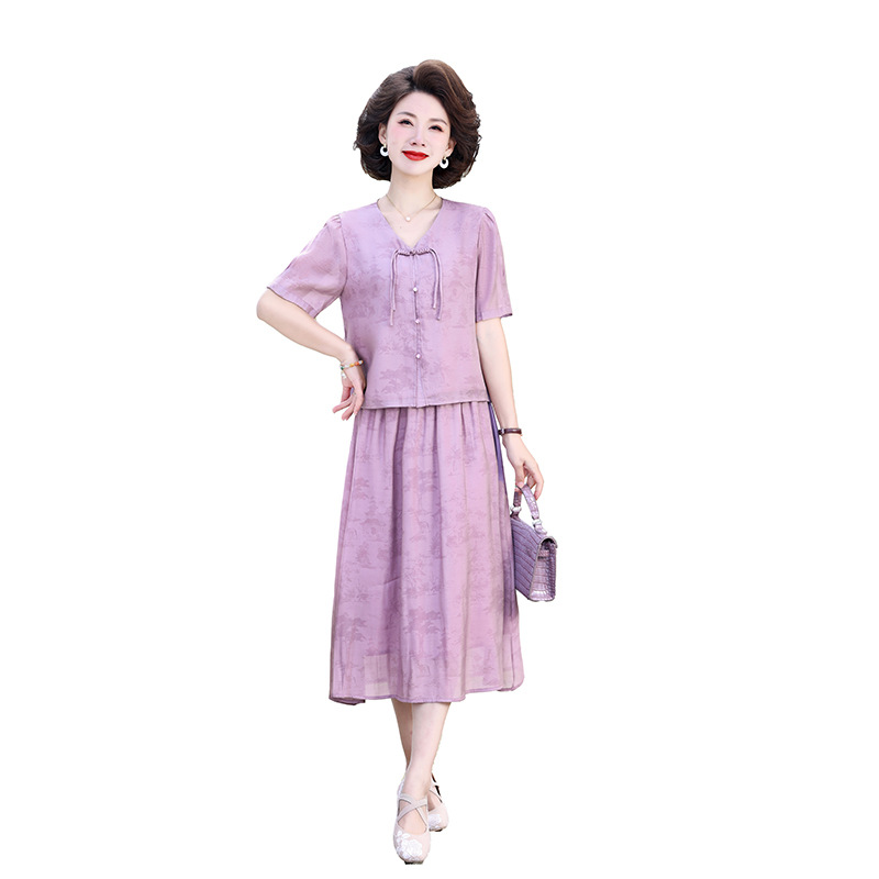 | nameOriginal | Mother's Summer Chinese Top Skirt suit Middle-aged and Elderly Women's Short-sleeved National Style Small Shirt Chiffon Skirt Two-piece Set |