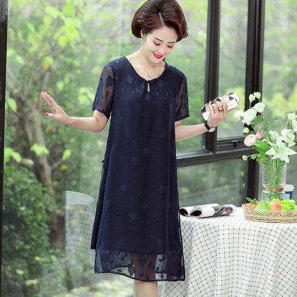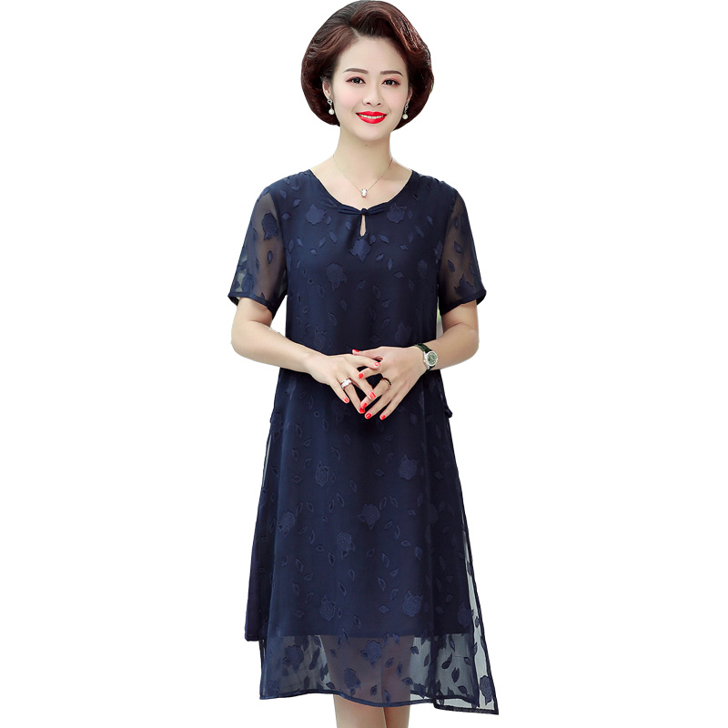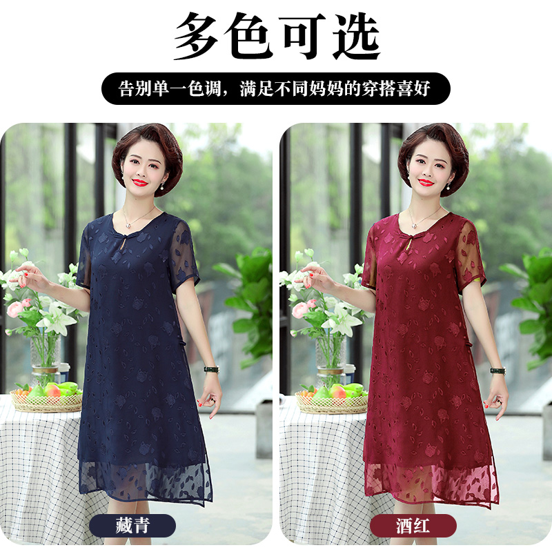 nameOriginal | Mother's summer dress dress over the knee 2024 new middle-aged women's 40-year-old 50-year-old middle-aged rich wife western style skirt |