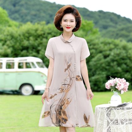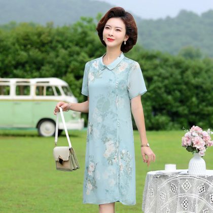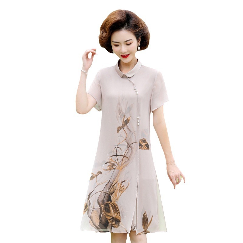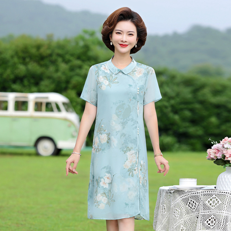 | nameOriginal | Mother's Summer Mid-length plus size Chiffon Modified Cheongsam Dress dress 2024 Middle-aged and Elderly Women's Elegant Skirt |