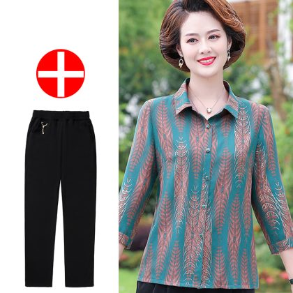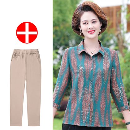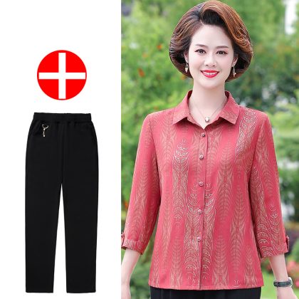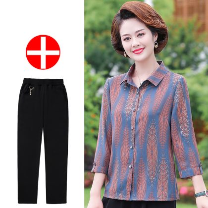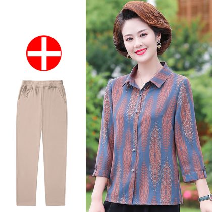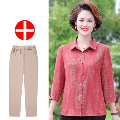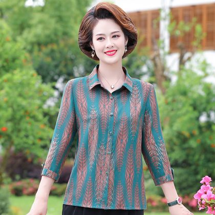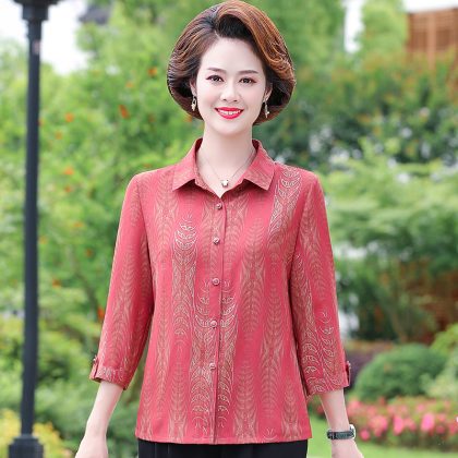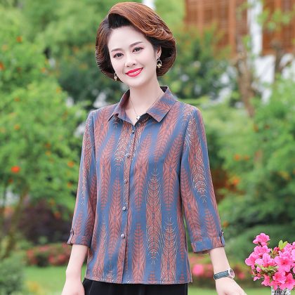 | nameOriginal | Mother's Summer New Style Shirt Seven-Sleeve Middle-Aged Women's Shirt Lapel Old Women's Summer Top Stylike suit |