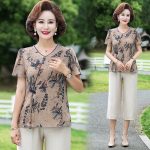 | nameOriginal | Mother's Summer Short-sleeved T-shirt Western Style 2024 New Women's Clothing for Middle-aged and Elderly Summer Chiffon Top Two-piece Set |