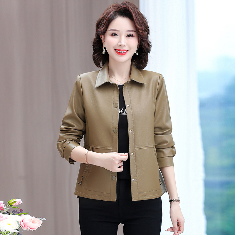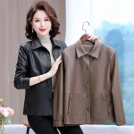 سترة جلدية مغسولة للأم 2024 للربيع والخريف جديدة بعمر 35 عامًا 45 ملابس جلدية عصرية سترة جلدية للنساء في منتصف العمر وكبار السن