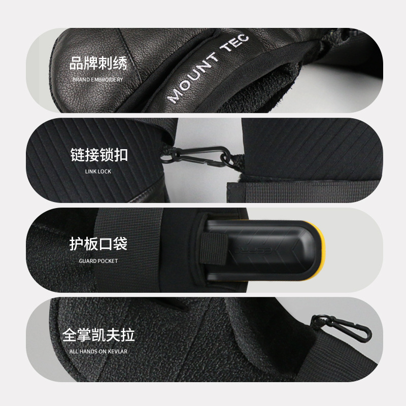 MOUNTITEC ski gloves professional winter Kevlar gloves stuffy sweat-absorbent wear-resistant wristband windproof waterproof