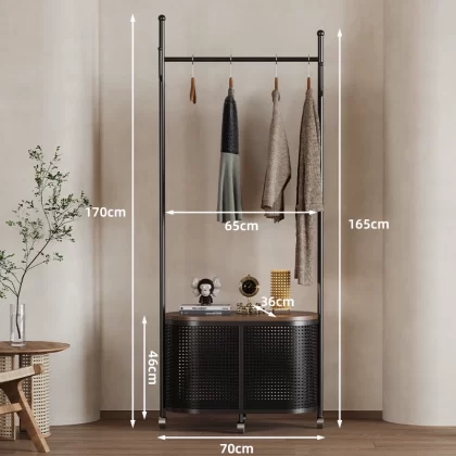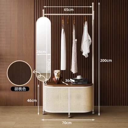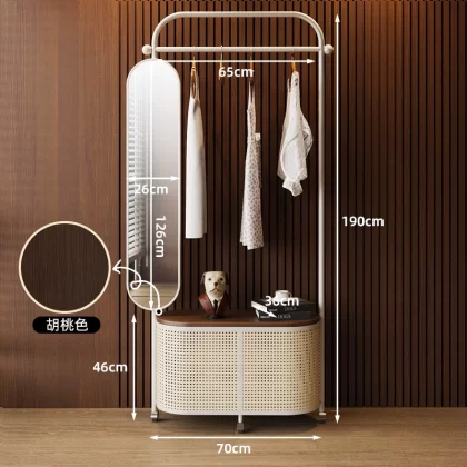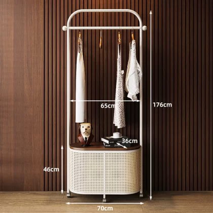 Movable imitation rattan retro storage coat rack for bedroom