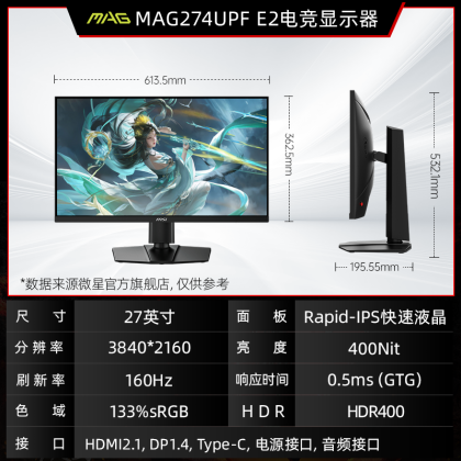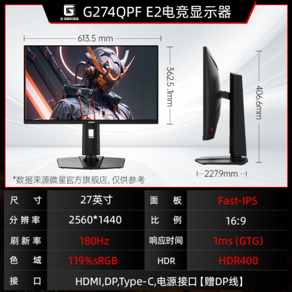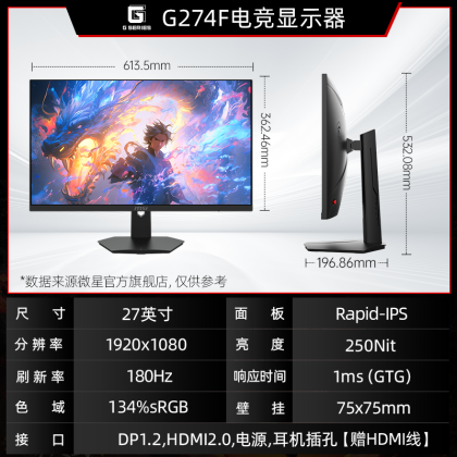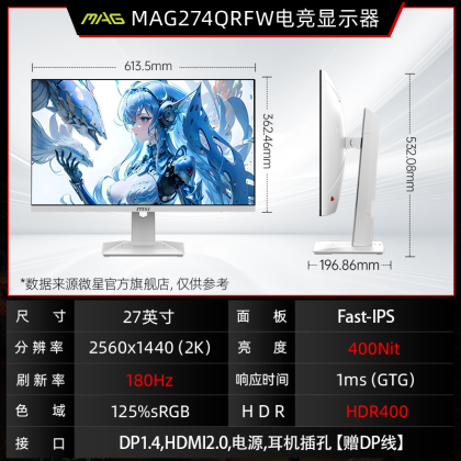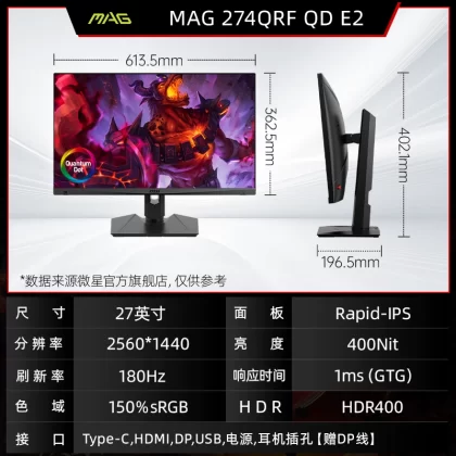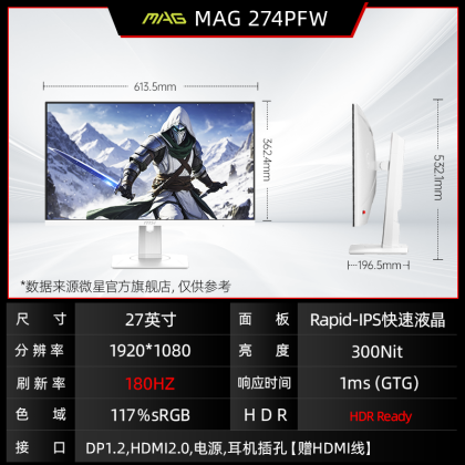 MSI 27-inch 2K180HZ e-sports desktop computer monitor MAG274QRFW white 144HZ screen 24