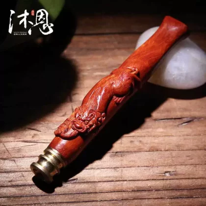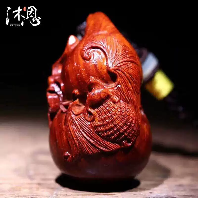 قطعة يد من مادة قديمة من خشب الصندل الأحمر بأوراق صغيرة من Muen الهندي، قطعة يد صغيرة زخرفة غنية بالدروع 0471