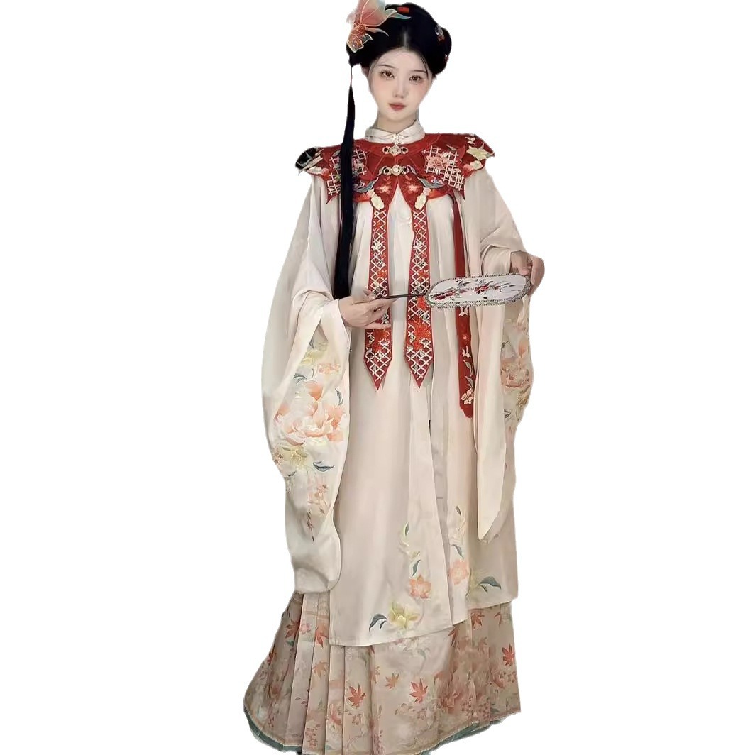 Muhua Adult Hanfu [Song Qianqiu] Ming-made stand-collar shirt Heavy-industry embroidery cloud shoulder horseback skirt Spring and summer suit
