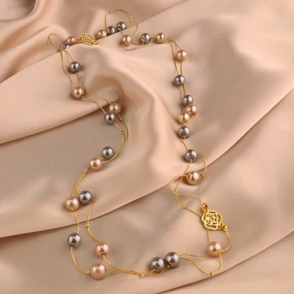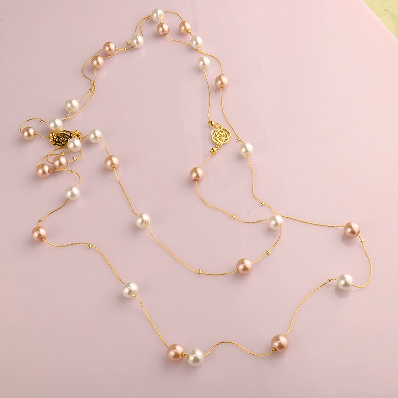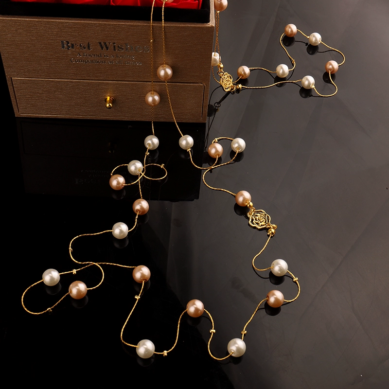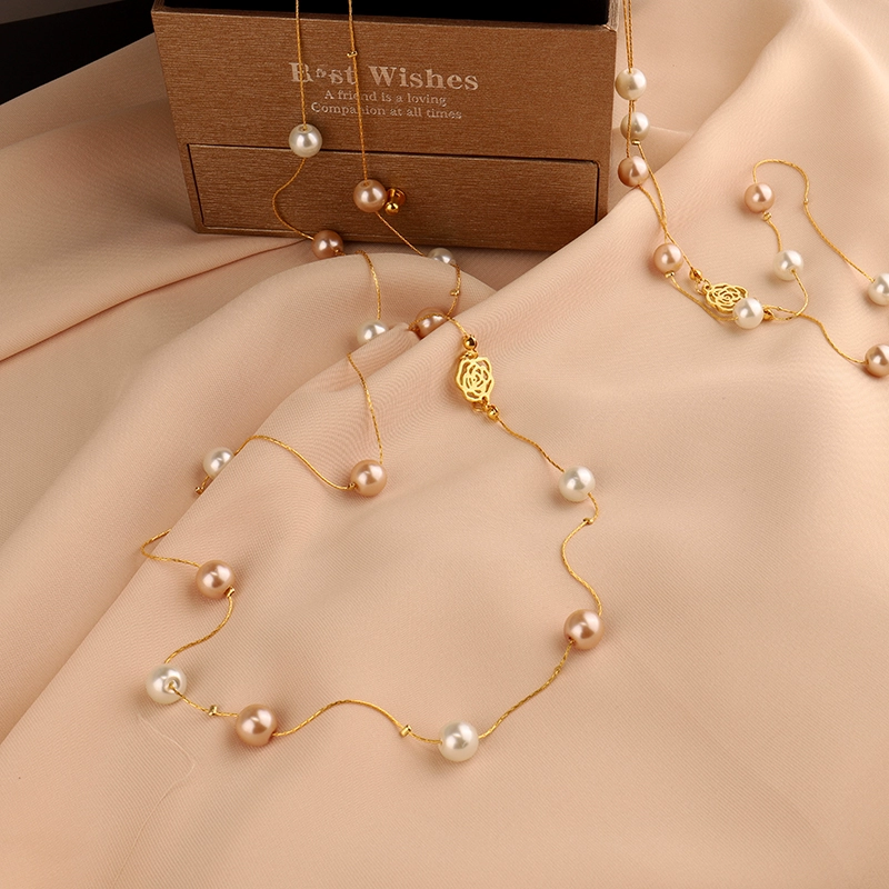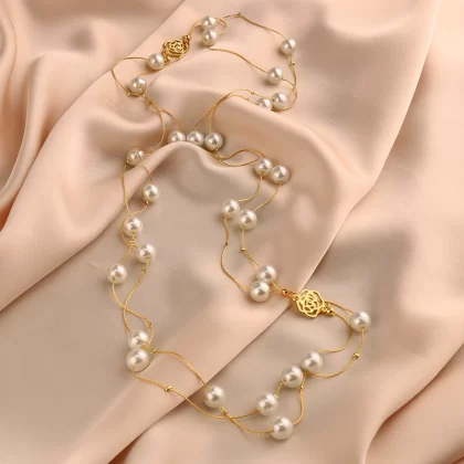 Multi-layered pearl necklace for women 2022 new style light luxury versatile shell beads sweater chain small fragrant rose decorative hanging chain
