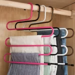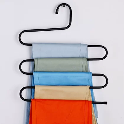 رف بنطلون متعدد الوظائف ، ورفع تخزين بنطلون سلس ، رف تخزين سحري على شكل خزانة S ، مقطع شماعات الملابس متعددة الطبقات