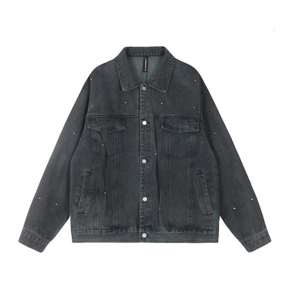 [Muma] 2024 Autumn New Washed Gradient Denim Jacket Women's High Street Fashion Brand Rivet Design Jacket