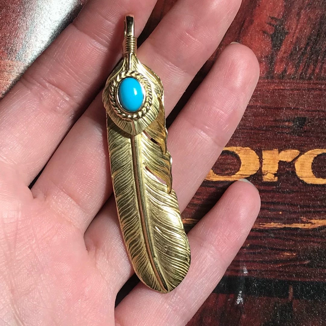 | nameOriginal | Mustang Manor Goros Takahashi Feather Goro style sixth generation all-copper turquoise feather pendant |