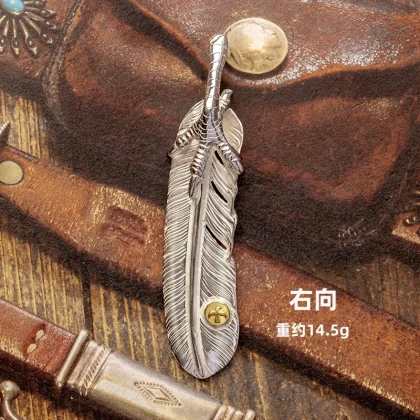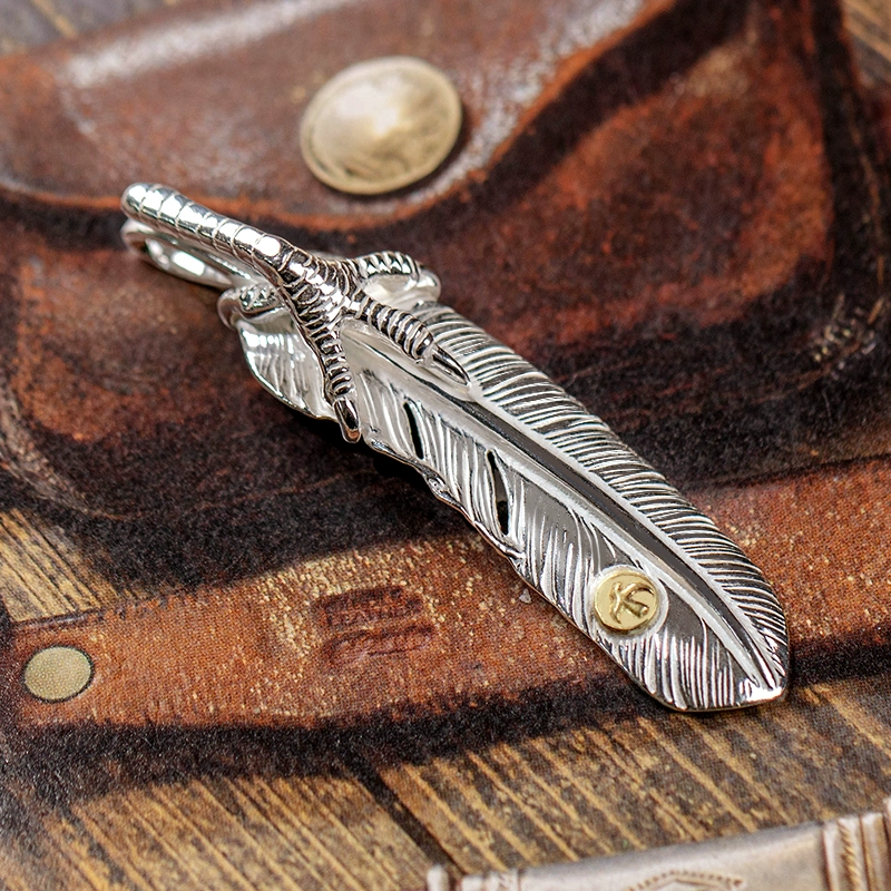 Mustang Manor goros Takahashi Feather Goro style sixth generation silver eagle claw touch gold feather pendant 925 silver