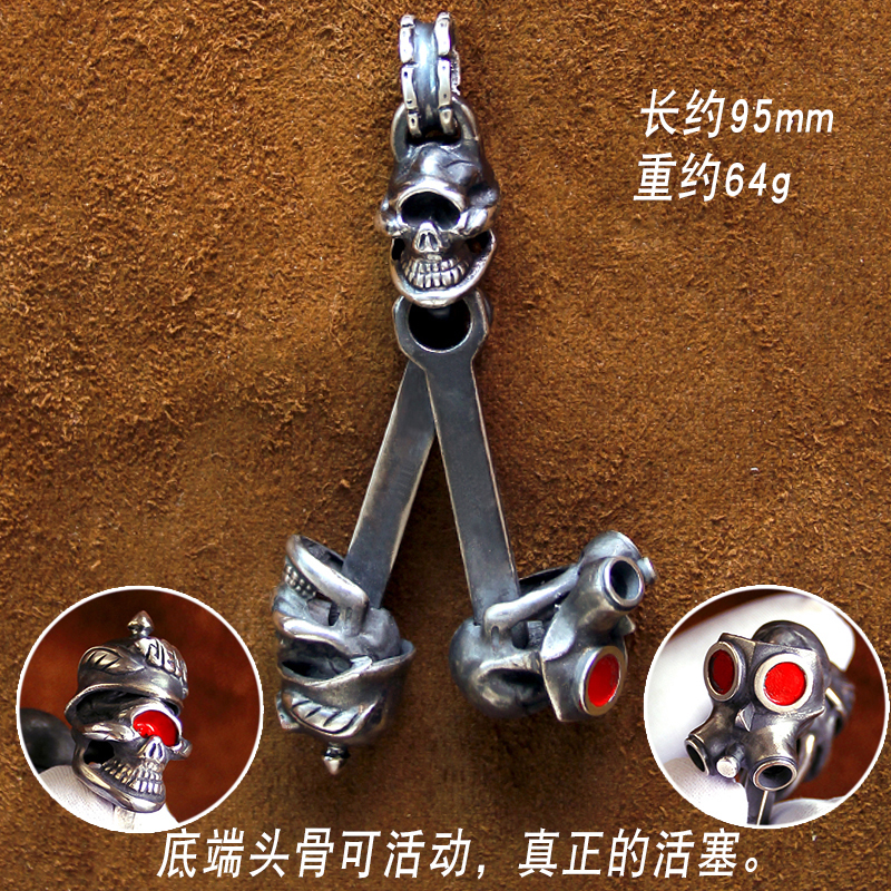 Mustang Manor handmade stop light Takashi Takayama style wrench skull mask red paint piston pendant