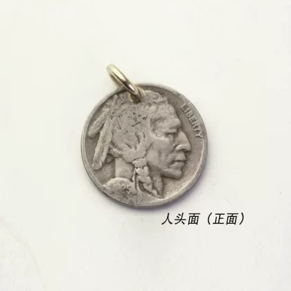 | nameOriginal | Mustang Manor Takahashi Feather Goro Style Indian 5 Cent Wanderer Coin Buffalo Coin Pendant |