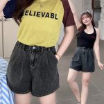 | nameOriginal | N8717 ins loose high waist A- line wide leg soft Denim shorts wholesale plus size chubby girl Denim shorts |