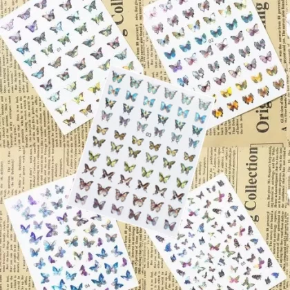 Nail Net Red Hot Hot Butterfly Laser Sticker Back Glue Insecure in Little Red Book 3D Aurora مقاومة للماء مجوهر