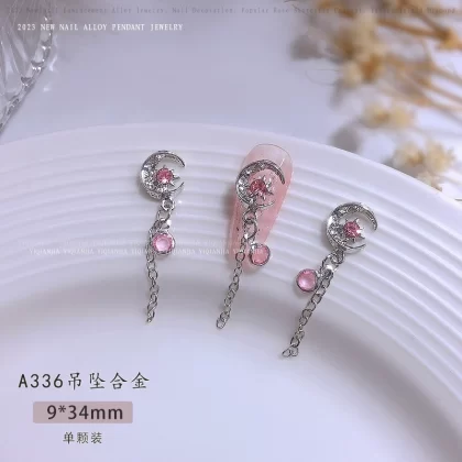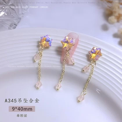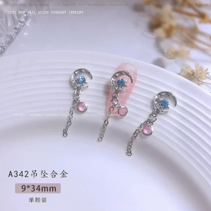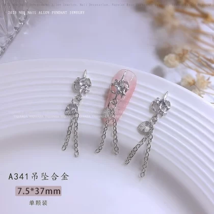 | nameOriginal | Nail decoration butterfly tassel jewelry chain pendant pearl metal alloy high color retention ice moon nail art six star diamond |
