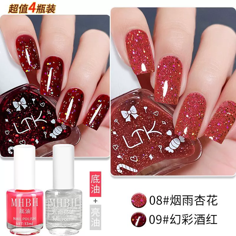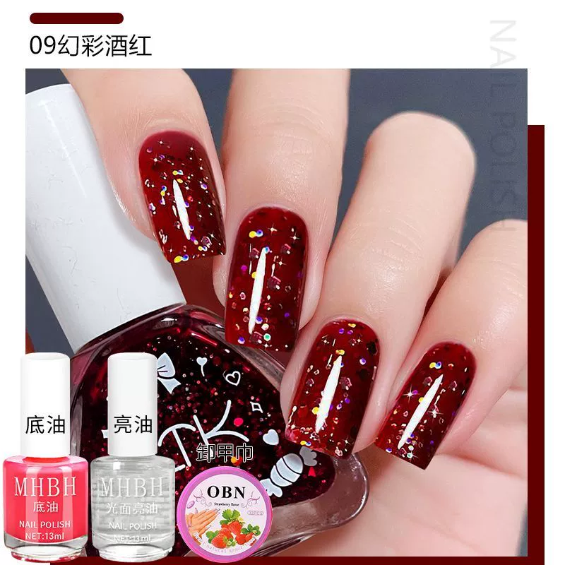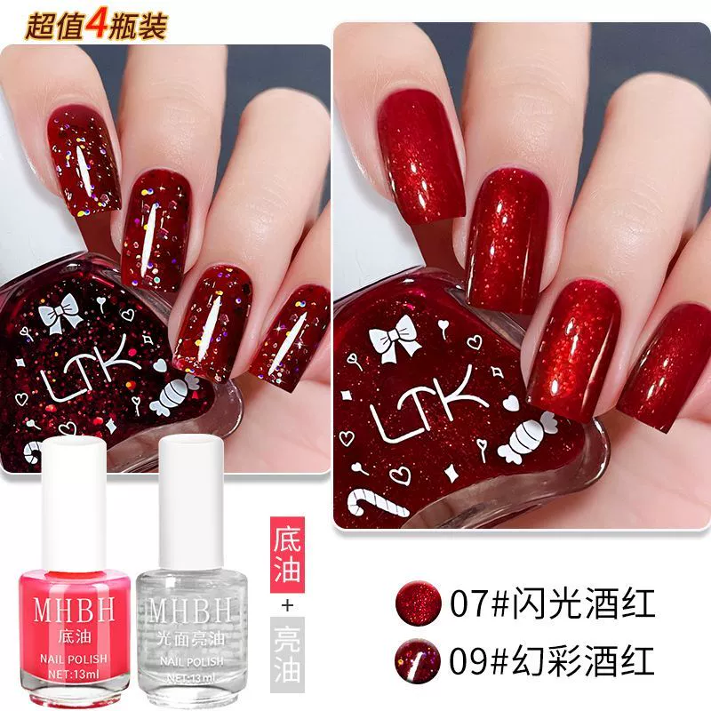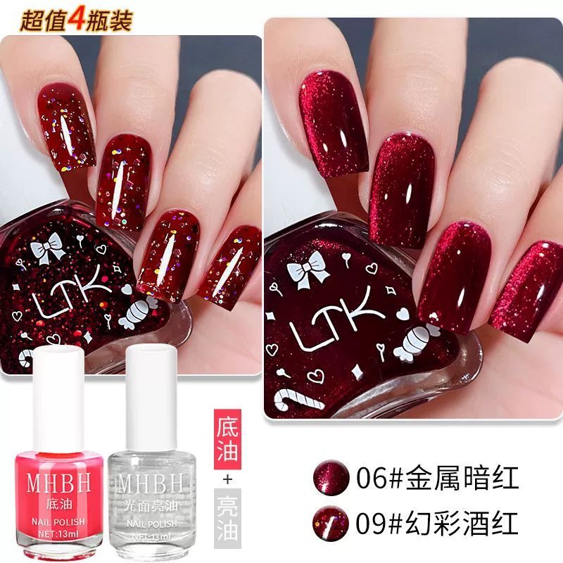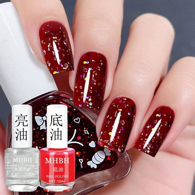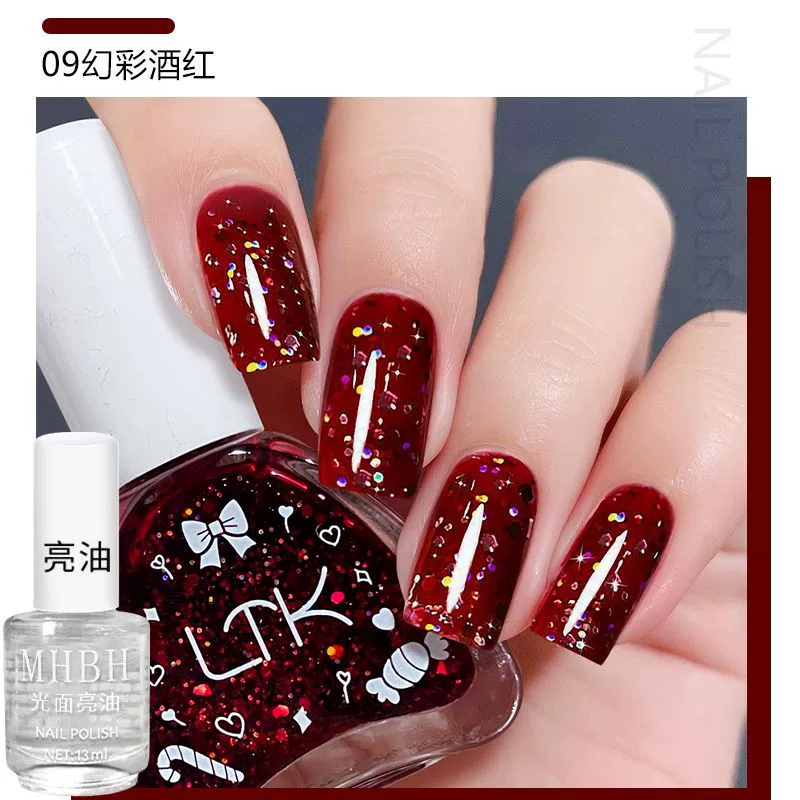 | nameOriginal | Nail polish burgundy toe no bake quick drying glitter |