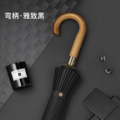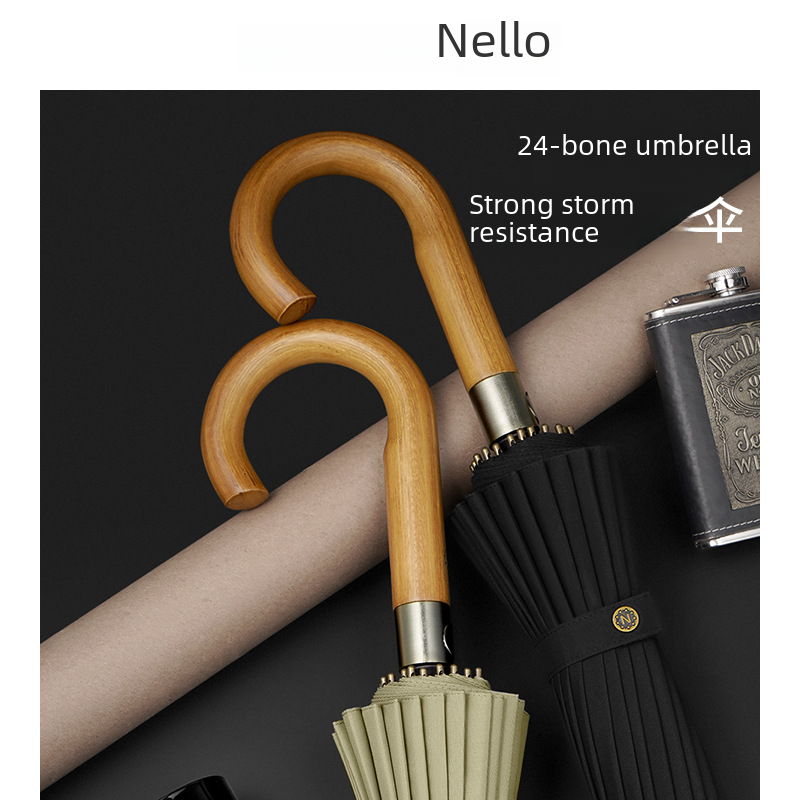 Nailo 24-bone straight rod umbrella solid wood handle business umbrella thickened umbrella cloth anti-strong wind and rain dual-purpose umbrella spot wholesale