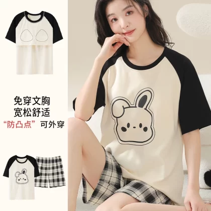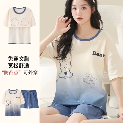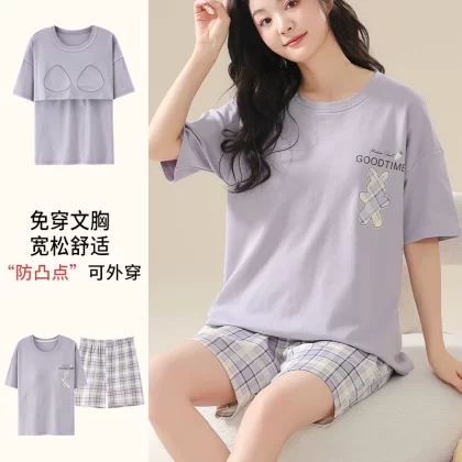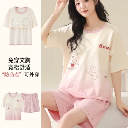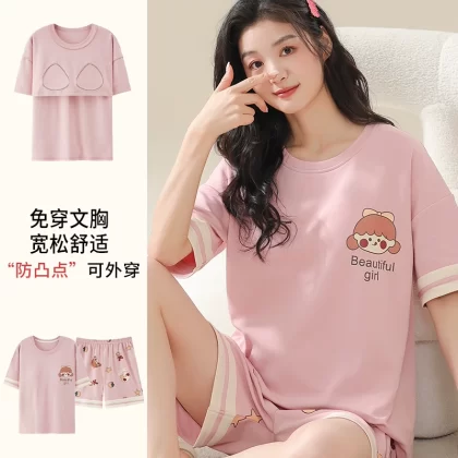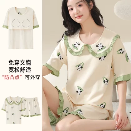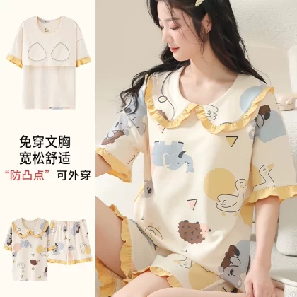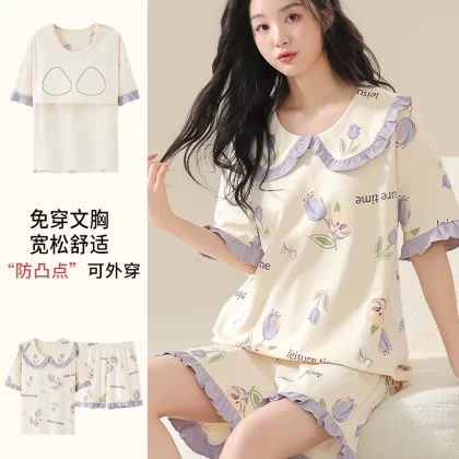 | nameOriginal | Nanjiren pure cotton pajamas for women summer short-sleeved thin large size fat mm 200 pounds can be worn outside with chest pads home clothes |