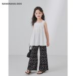 | nameOriginal | nanokids 24 Summer New Girl's Square Collar Doll Shirt Chiffon Crumple Pants Children's Top All-match |