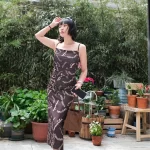 | nameOriginal | nanushka summer stretch fabric slim fit suspender letter print dress brown mengmao same style |
