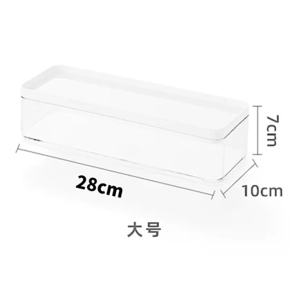 Narrow and long acrylic kitchen with built-in tableware and sundries