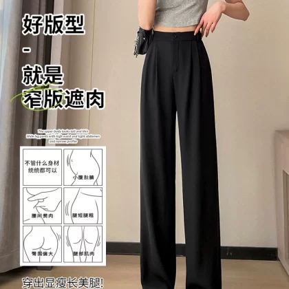 Narrow autumn casual straight high-waisted thin wide-leg pants
