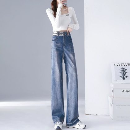 | nameOriginal | Narrow Wide-leg Jeans Women's Spring and Autumn 2024 New High Waist Slimming Small Early Spring Long Straight Pants |