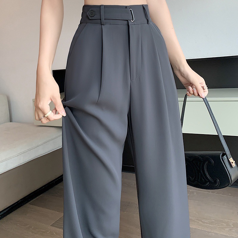 | nameOriginal | Narrow Wide-Leg Pants Women's Summer Ice Silk Pants for Small Thin Dape Straight Casual Slimming Simple floor-mopping Pants |