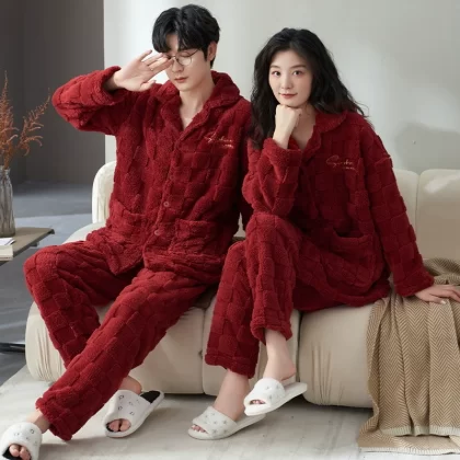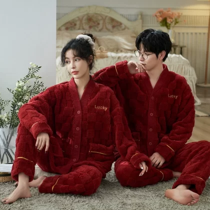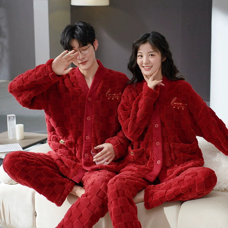 | nameOriginal | National style red coral velvet wedding couple pajamas for men and women winter plus velvet thickening and warmth 2023 new set |