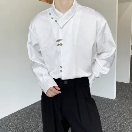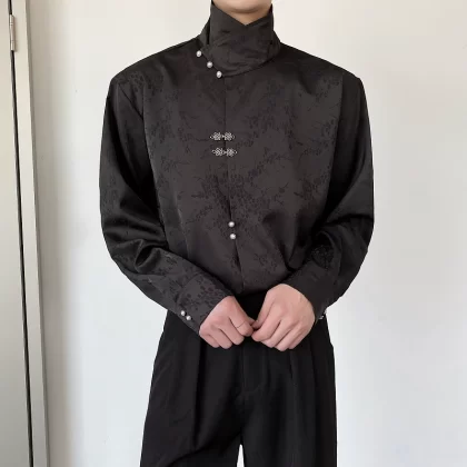 | nameOriginal | National trend metal stand collar long sleeves yuppie satin plate buckle |