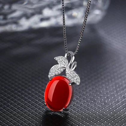 | nameOriginal | Natural gemstone red agate simple necklace chrysoprase female 925 sterling silver elegant pendant for mother and mother-in-law |
