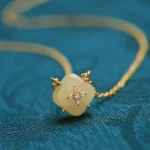 Natural Hetian jade sterling silver 18k gold-filled four-leaf clover pendant for women, jade gold inlaid jade necklace for women, light luxury niche
