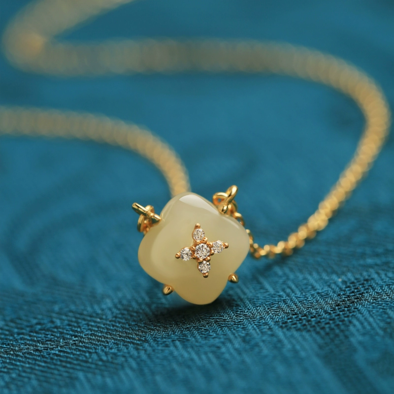 Natural Hetian Jade Silver 18k Bag Gold Four -Leaf Grass Pendant Female Jade Gold Jade Jade Netclace Light Light Light