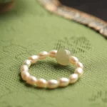 Natural Hotan Jade Freshwater Rice Pearl Beads Transfer Bead Ring Women's High-end Light Luxurious Index Finger Ring Women's Model