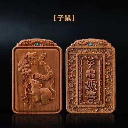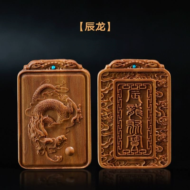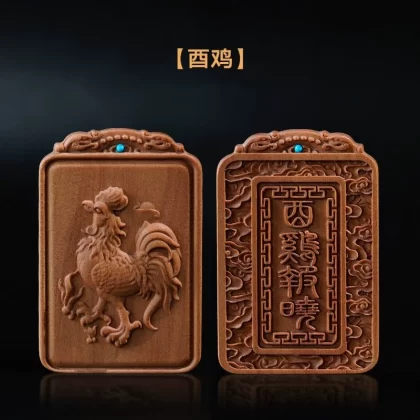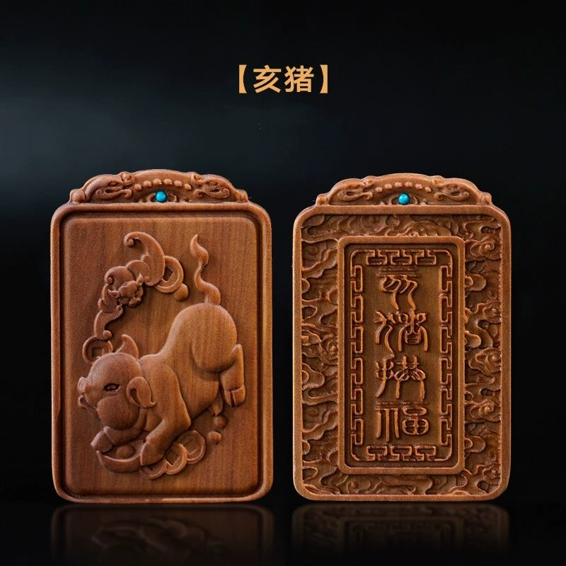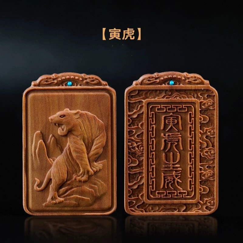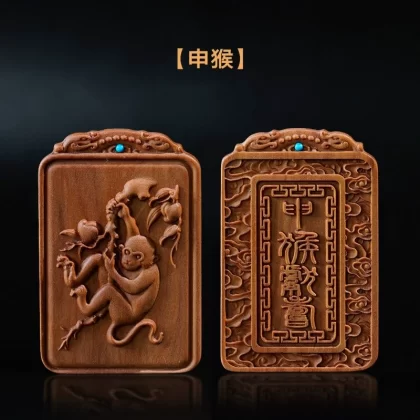 Natural old mountain sandalwood zodiac sign without incident card twelve zodiac signs literary play hand piece animal year pendant for men and women