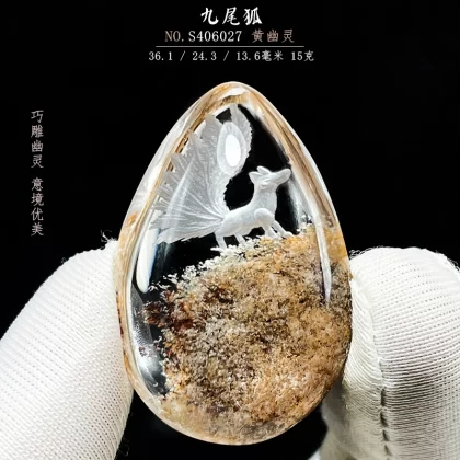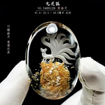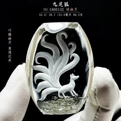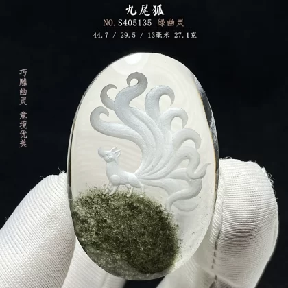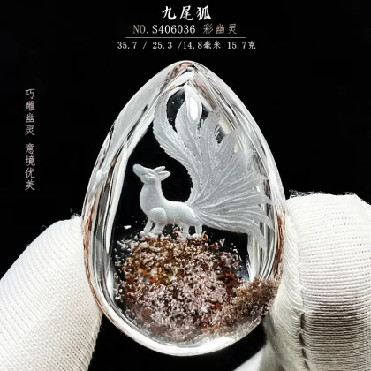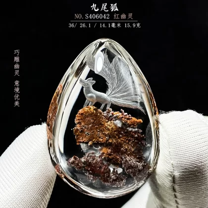 | nameOriginal | Natural red and green ghost fox pendant nine-tailed fox crystal necklace red ghost red rabbit hair crystal red glue flower gift |