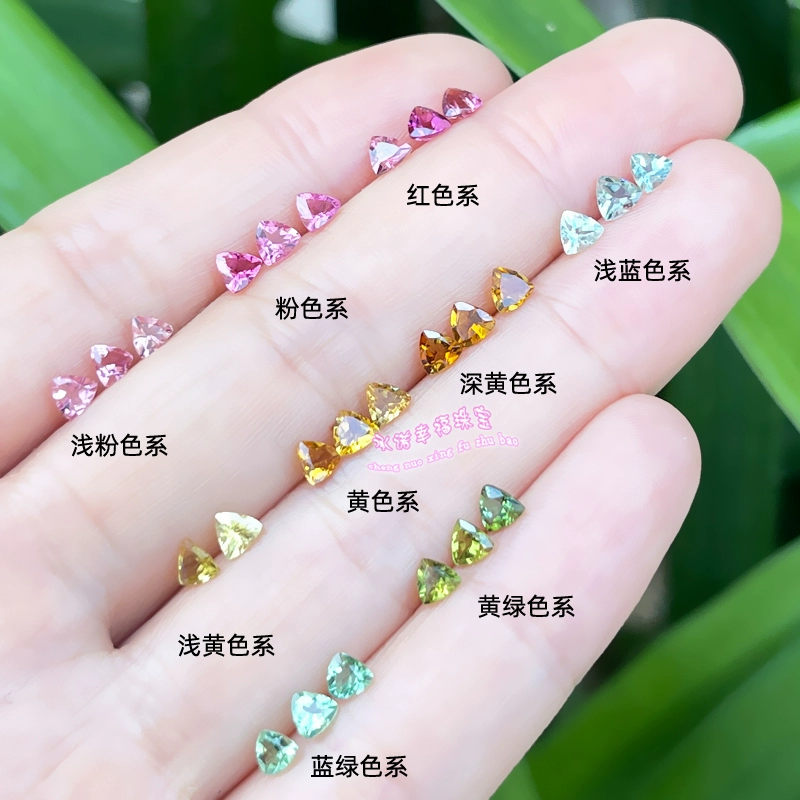 | nameOriginal | Natural tourmaline bare stone ring surface Triangular 3.5MM bare stone ring surface Candy color tourmaline rough stone |