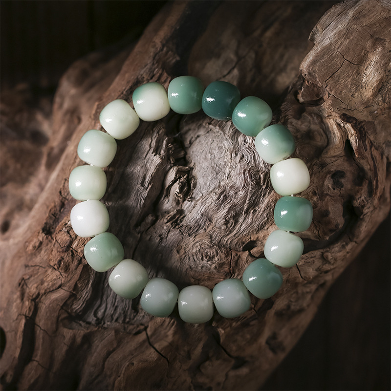 | nameOriginal | Natural weatherized green bodhi root literary men's gradual change white jade bodhi plate to play a variety of selection around the finger soft bracelet women |