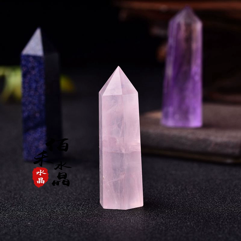 | nameOriginal | Natural white purple pink crystal hexagonal prism ornaments original stone single pointed pillar home living room office desk furnishings |